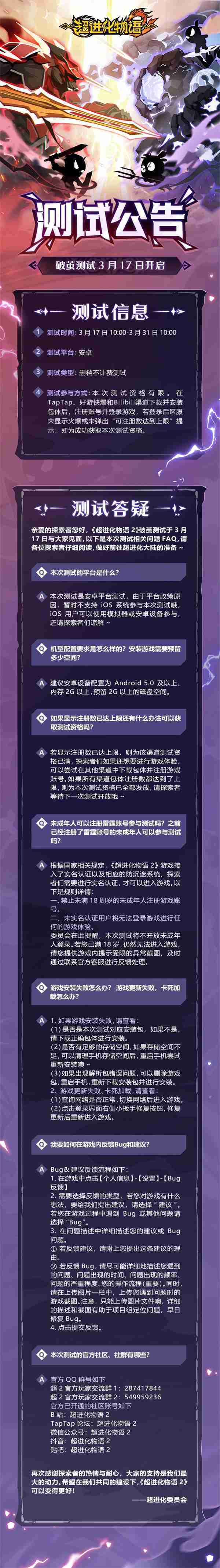 《超进化物语2》首次限号不计费删档测试——「破茧测试」将于3月17日开启,,,随我们确认测试细节,,明天迈出踏上超进化大陆的第一步吧!!!!