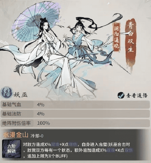 西湖踏春,,,,未曾想竟卷入到青白蛇故事中。。青蛇与白蛇本是修道有成的小妖,,,两人在西湖边上开了间医馆,,,济世救民,,不料沾惹人世因果,,,,遭高僧误解。。。白蛇被镇压于雷峰塔下,,,侥幸逃脱的青蛇则在三界奔波,,,,只为早日寻得解救白蛇之法。。。。如今千年已过,,高僧云游四海,,,雷峰塔封印松动,,,,而青蛇亦寻得强力古宝,,意欲趁此机会解救出姐姐……若仙友有幸与青白双生结识,,,即可习得其绝技·水漫金山,,,,对敌方造成双攻伤害,,,于修炼大有助益。。。