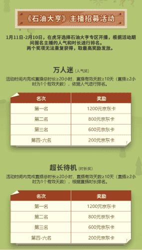 除了“油王”争霸赛,,,精英主播招募活动亦同步开启!!!!赛事分时长奖和人气奖,,,,奖励同样丰厚!!