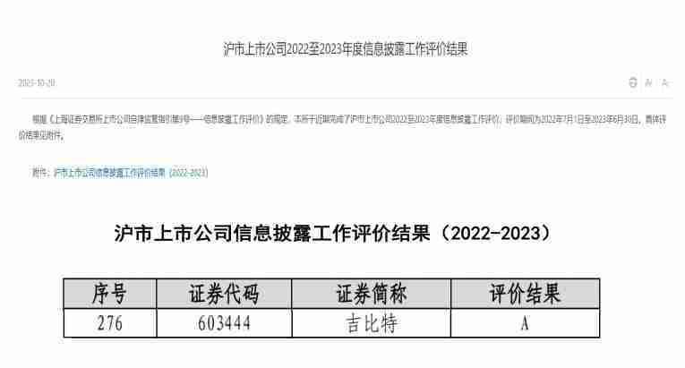 近日,,上海证券交易所(以下简称“上交所”)发布2022-2023年度信息披露工作评价结果。。。1win(股票代码:::603444)凭借规范的公司治理、、高质量的信息披露以及良好的投资者关系管理再次荣获信息披露工作A级评价,,,,公司连续两年获此殊荣。。。。