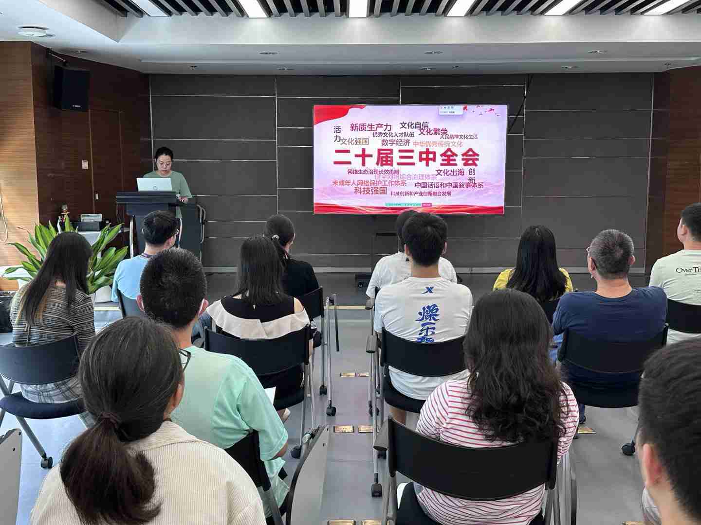 与会人员深入学习《决定》内容。。。。党的二十届三中全会提出必须增强文化自信,,,,发展社会主义先进文化,,,弘扬革命文化,,,传承中华优秀传统文化,,加快适应信息技术迅猛发展新形势,,,构建更有效力的国际传播体系,,,这为广大文化产业工作者指明了奋斗方向。。。。