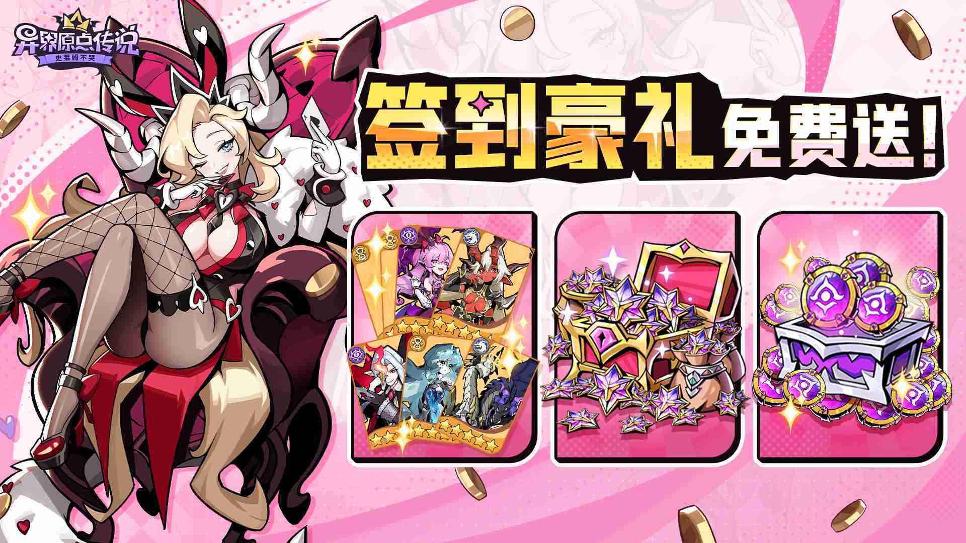 敢在应用商店标注“高福利”的游戏一定不简单。。。《史莱姆不哭》的预约福利除了孵蛋抽卡及养成资源外,,还有高价值的限定角色皮肤『甜蜜陷阱』。。