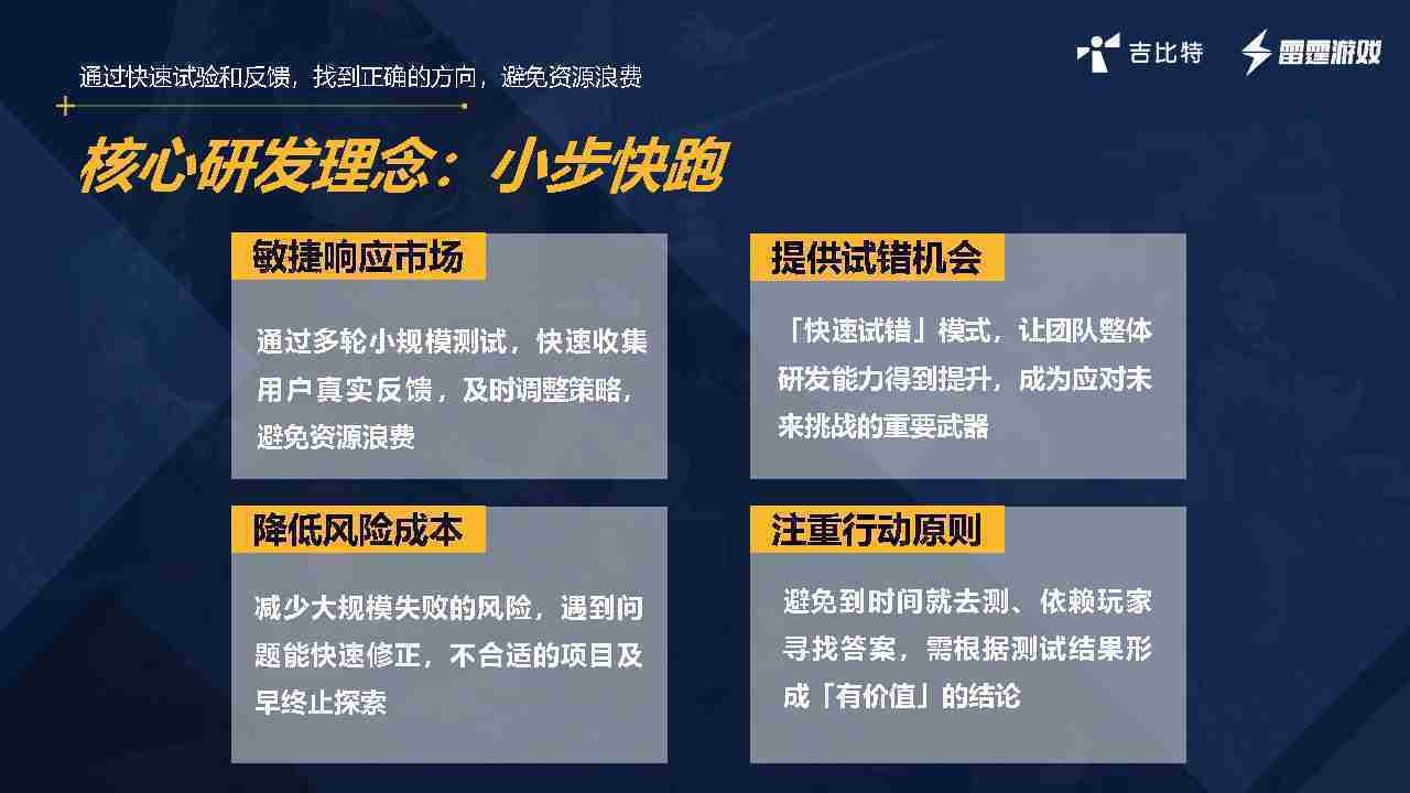小步快跑在实际进程中也发现,,,它带来了一个好处,,,可以让团队有更多的试错机会。。。特别是原来没有做过项目的策划,,,,他在想法有比较成型的案子时需要落地,,但也需要有机会让他锻炼成长。。从过往几年来看,,每一次实验确实可以给我们积累一些设计的经验,,长期来看确实让团队研发的能力整体有比较大的提升。。
