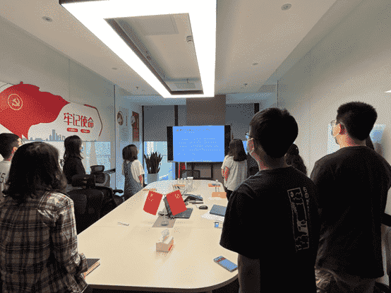 而后,,,,全体党员一起重新学习了解了目前的入党流程要求,,,各支部也将在后续工作中进一步发挥支部职能,,,做好发展党员工作。。最后,,,全体党员面向党旗,,重温入党誓词。。。