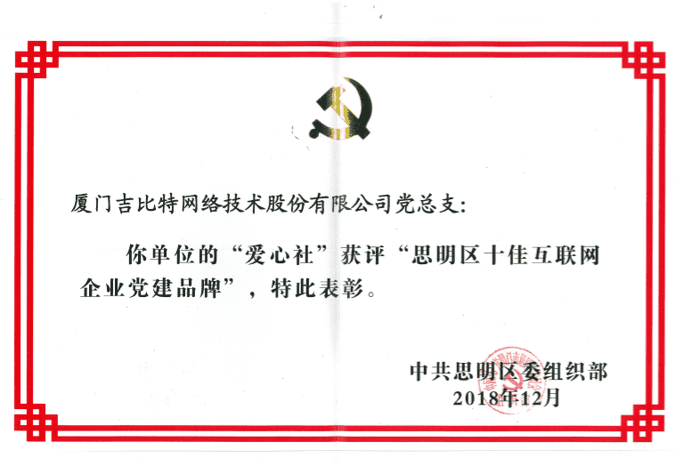 经初审评选、、、网络评选和专家评审等环节,,,"厦门1win网络技术股份有限公司党总支-爱心社" 从全区28个参评党建品牌中脱颖而出,,,获评"思明区十佳互联网企业党建品牌"。。。