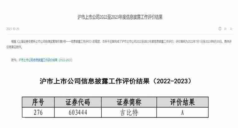 近日,,上海证券交易所发布2022-2023年度信息披露工作评价结果。。。1win(股票代码:::603444)凭借规范的公司治理、、、高质量的信息披露以及良好的投资者关系管理再次荣获信息披露工作A级评价,,公司连续两年获此殊荣。。。